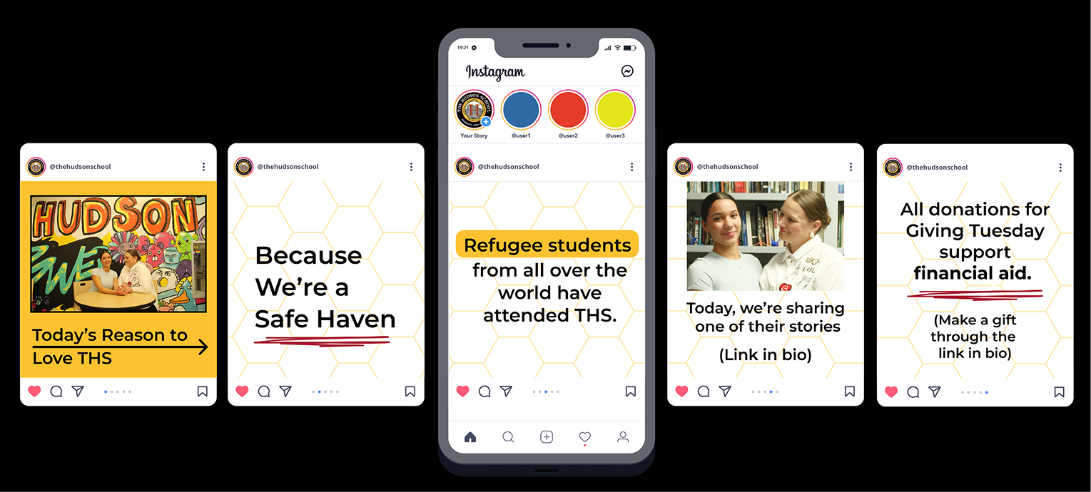 Gem Box Studio partnered with The Hudson School on a December fundraising campaign titled “Reasons to Love the Hudson School.” The campaign included fundraising email appeals, social media, a digital magazine, and a printed publication—pairing thoughtful storytelling with a playful, celebratory tone. Together, the pieces highlighted what makes the school special and invited the community to reflect, connect, and give.